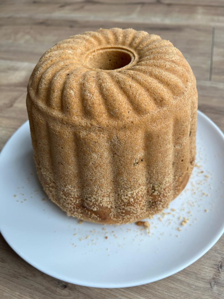 1. Haal dan de vorm uit de pan, deksel eraf en stort de poffert op een bord. Snijd in plakken. Lekker met boter, suiker, stroop … alles wat zoet is 😋